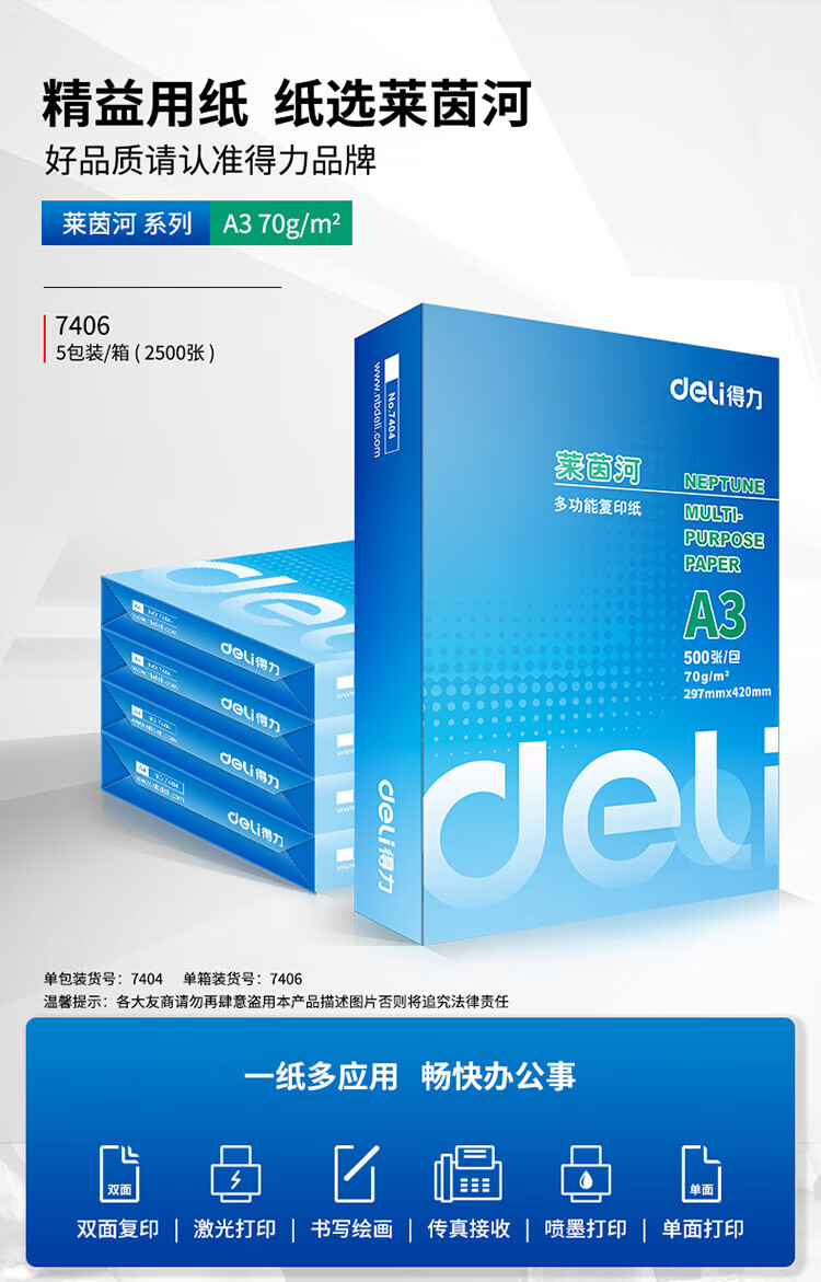 得力/deliA4復(fù)印紙70g克50...