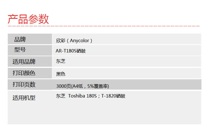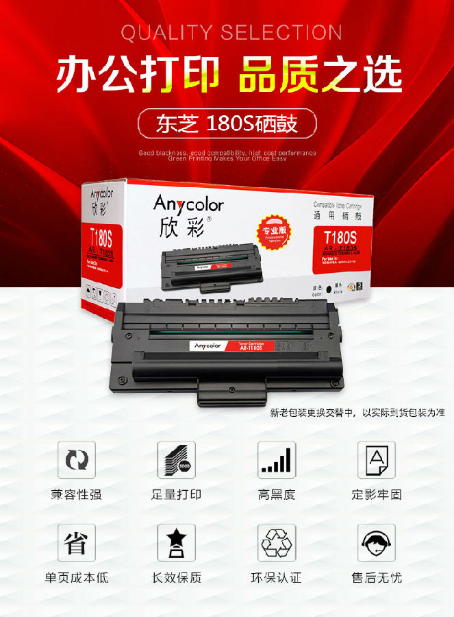 欣彩(Anycolor)180S硒鼓(專業(yè)版) AR-T180S 適用東芝Toshiba T-1820 180S 打印機(jī)硒鼓