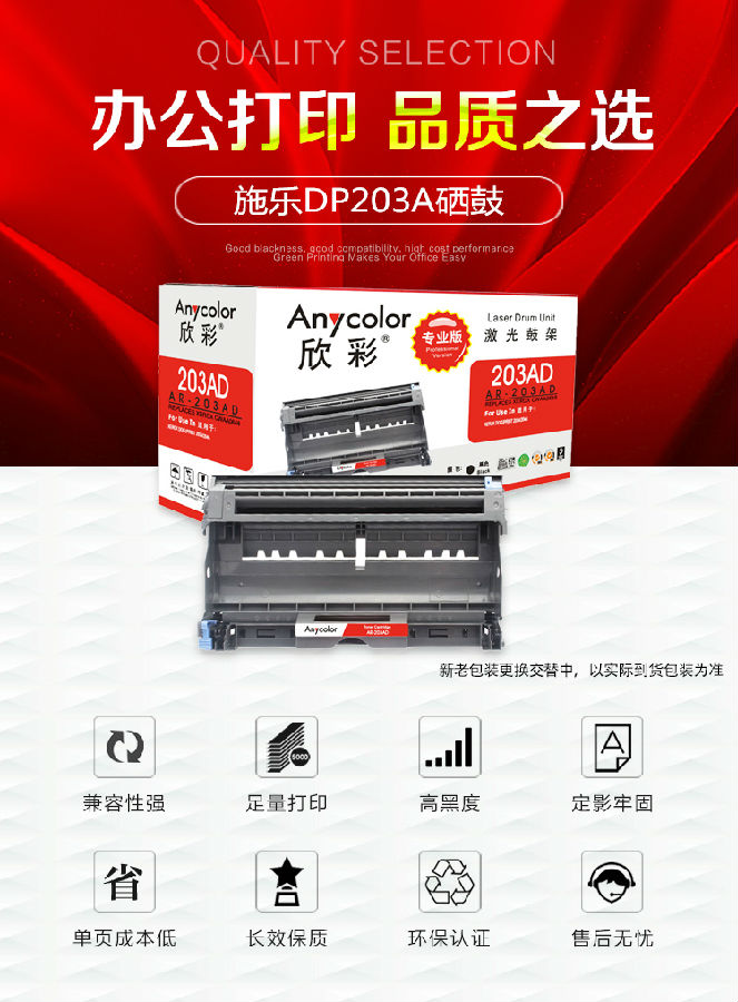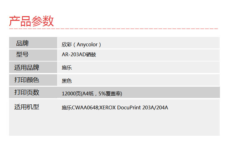 欣彩(Anycolor)DP203A硒鼓(專業(yè)版)AR-203AD黑色成像鼓 適用施樂CWAA0648 XEROX DocuPrint 203A 204A