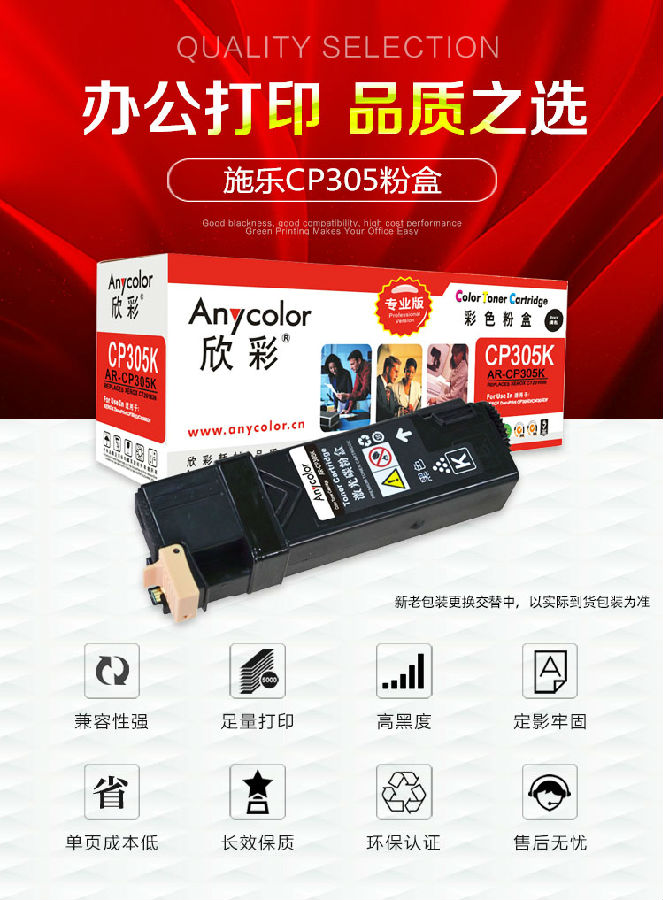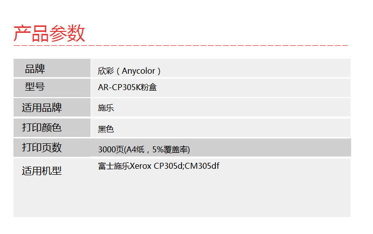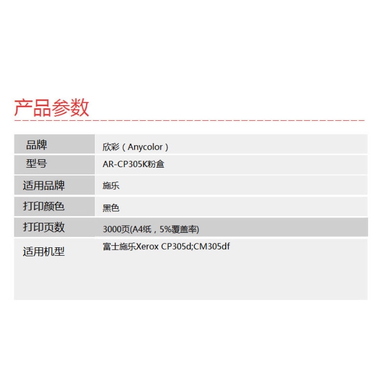 欣彩(Anycolor)CP305粉盒(專(zhuān)業(yè)版)AR-CP305K黑色 適用施樂(lè) Xerox CT201636 CP305D 墨粉筒 耗材