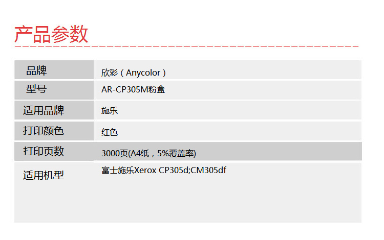 欣彩(Anycolor)CP305粉盒(專業(yè)版)AR-CP305M紅色 適用施樂(lè) Xerox CT201638 CP305D 墨粉筒 耗材