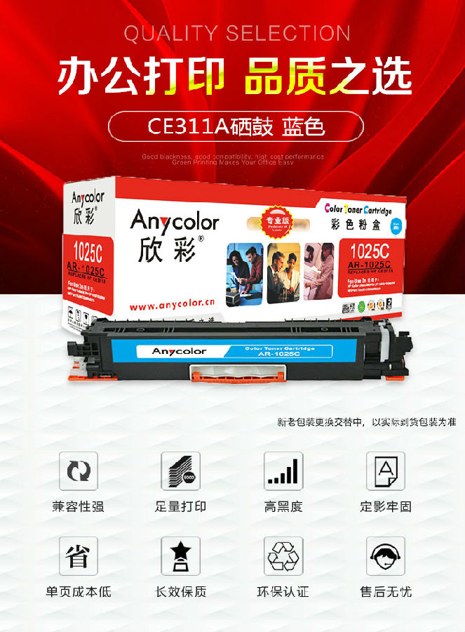 欣彩(Anycolor)CE311A硒鼓(專業(yè)版)AR-1025C藍色粉盒 適用惠普HP CP10251025NW MFP M175A M175NW M275