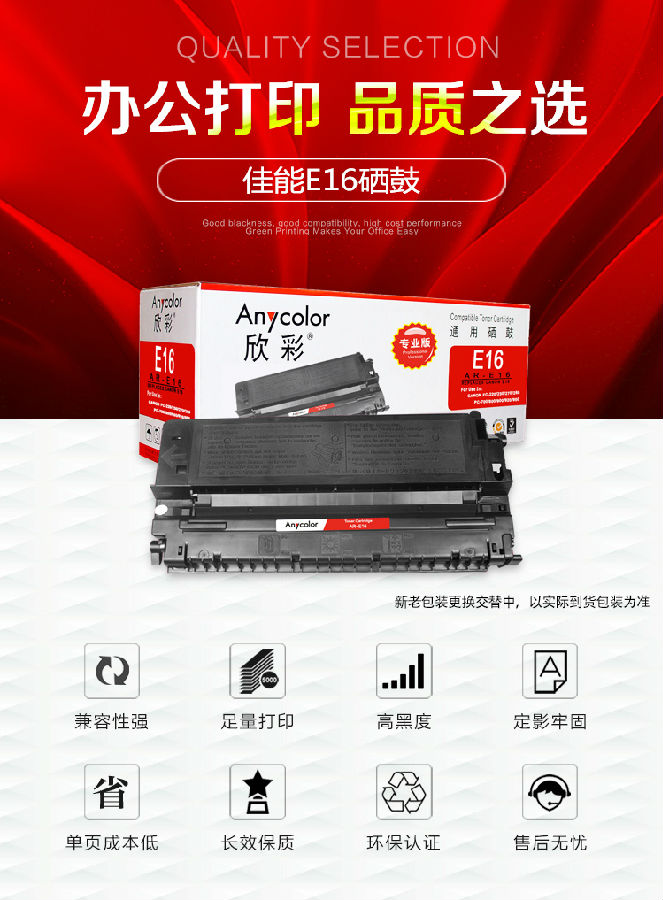 欣彩(Anycolor)E16硒鼓(專業(yè)版)AR-E16適用佳能CANON FC-220 230 270 288 290 298 300 500 PC-700