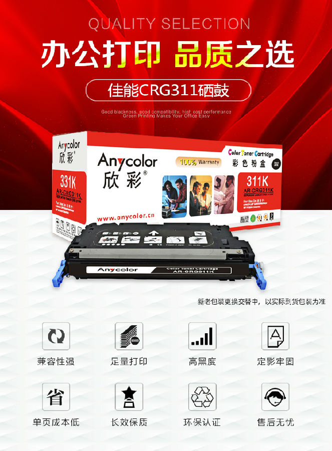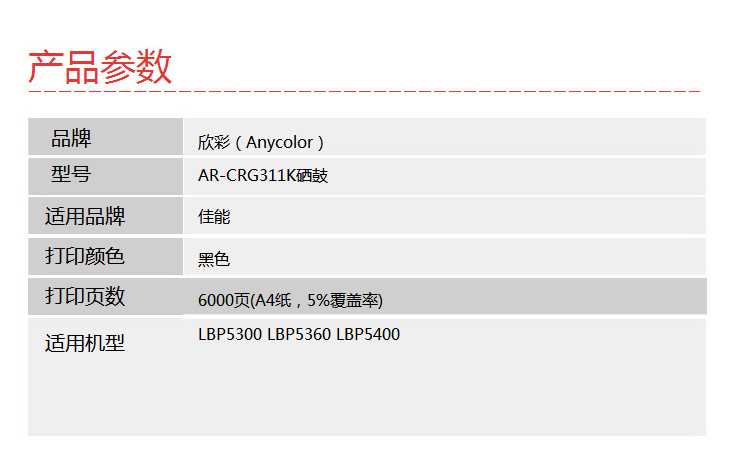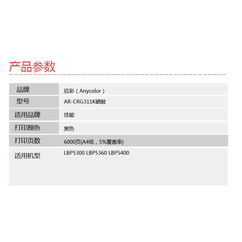 欣彩(Anycolor)CRG311硒鼓(專(zhuān)業(yè)版)AR-CRG311K黑色 適用佳能 CANON LBP5300 5360 5400